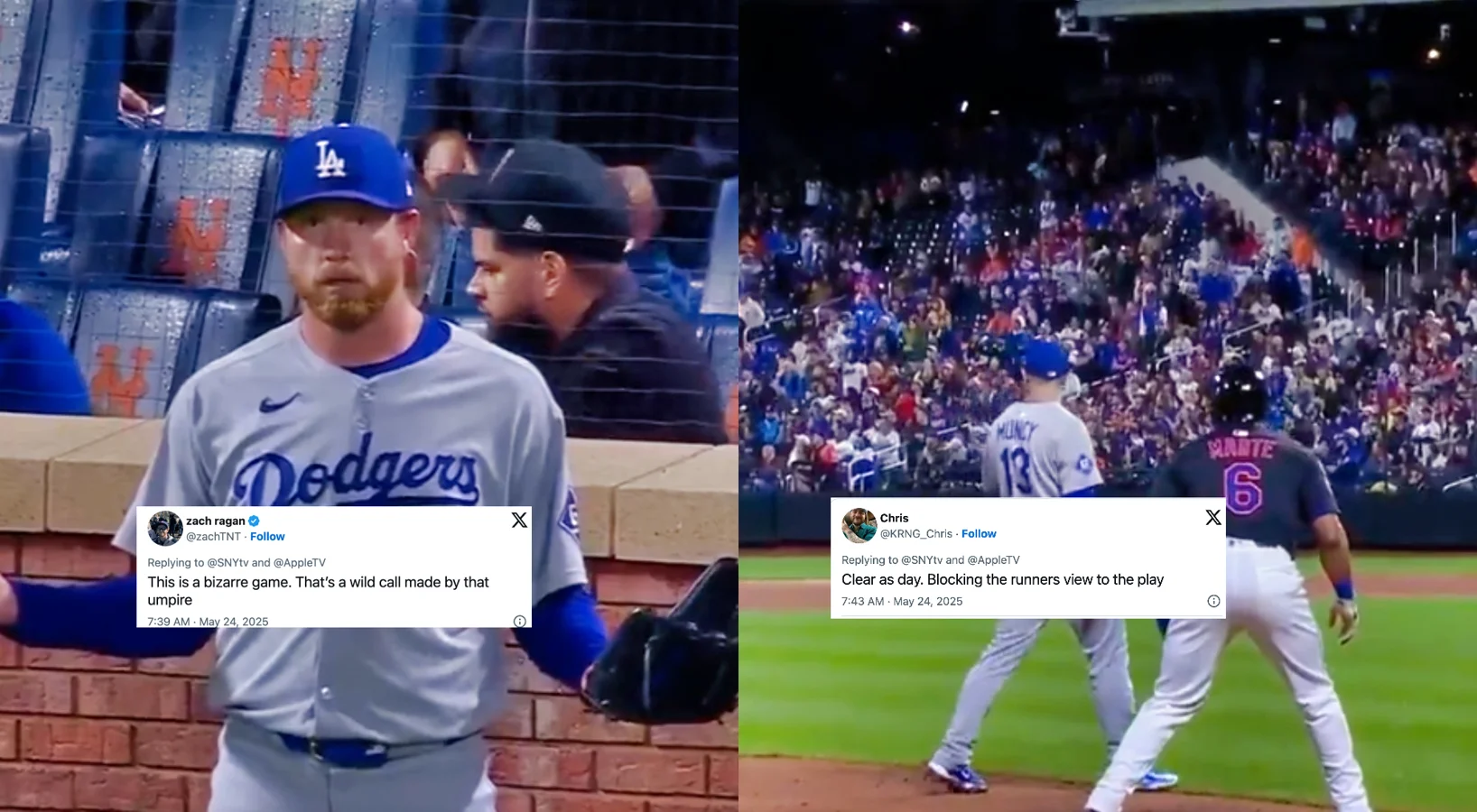 Earlier in the contest, another unusual ruling went in favor of the Dodgers on a tag-up play involving Michael Conforto. During a fly ball into the gap, Mets outfielders inadvertently interfered with one another, leading to a bobbled catch. Conforto tagged up and advanced before Tyrone Taylor secured the ball, prompting the Mets to challenge that Conforto left early.