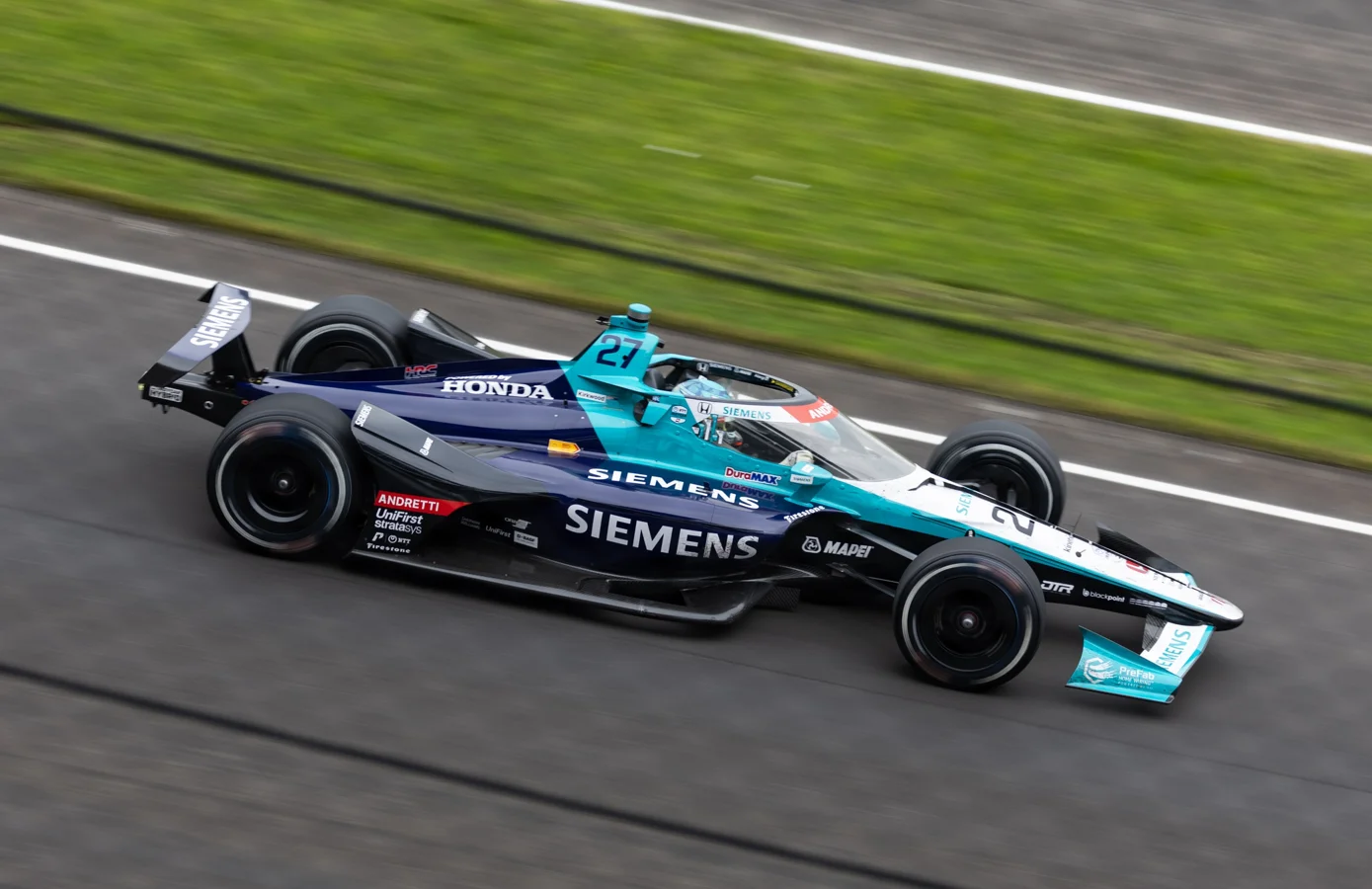 “Turn 1, it’s very wide on entry, and it looks inviting. And then all of a sudden it gets very, very tight on exit. And it happens a lot around this track.”