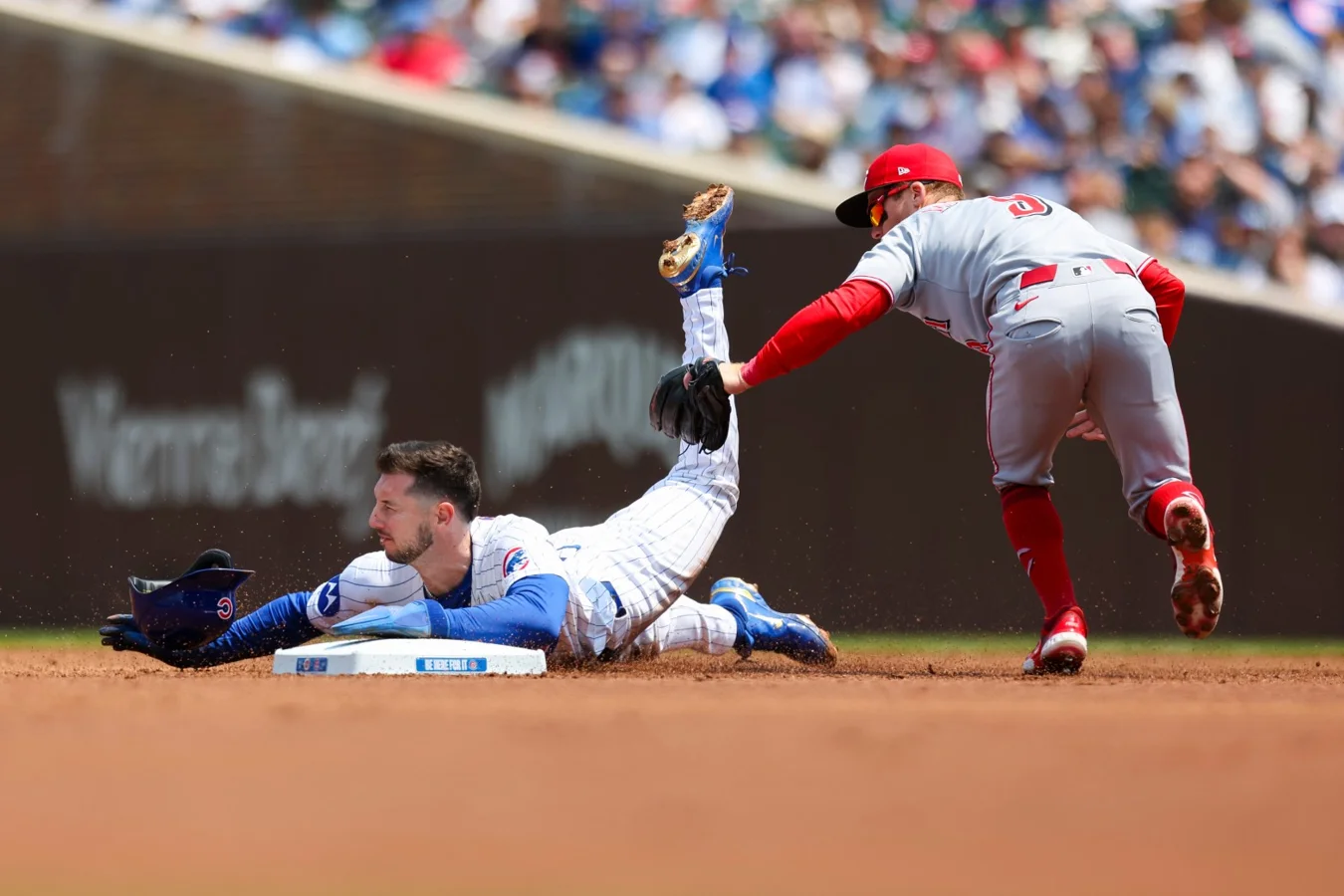 Early in the game’s first inning, Tucker attempted to steal second base but was tagged out following a hard slide. Prior to this, he had reached base after being hit by a pitch in the foot during the same inning. Throughout the game, he continued to contribute offensively, scoring a run on a single by Pete Crow-Armstrong in the third inning and later fouling out during the fourth inning’s last out.
