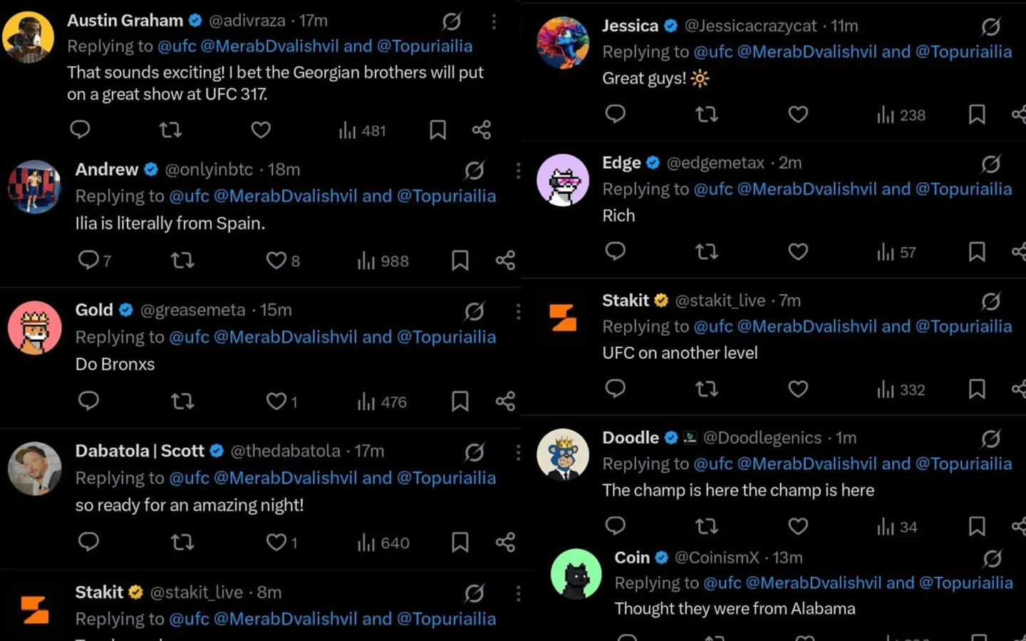 “That sounds exciting! I bet the Georgian brothers will put on a great show at UFC 317.”