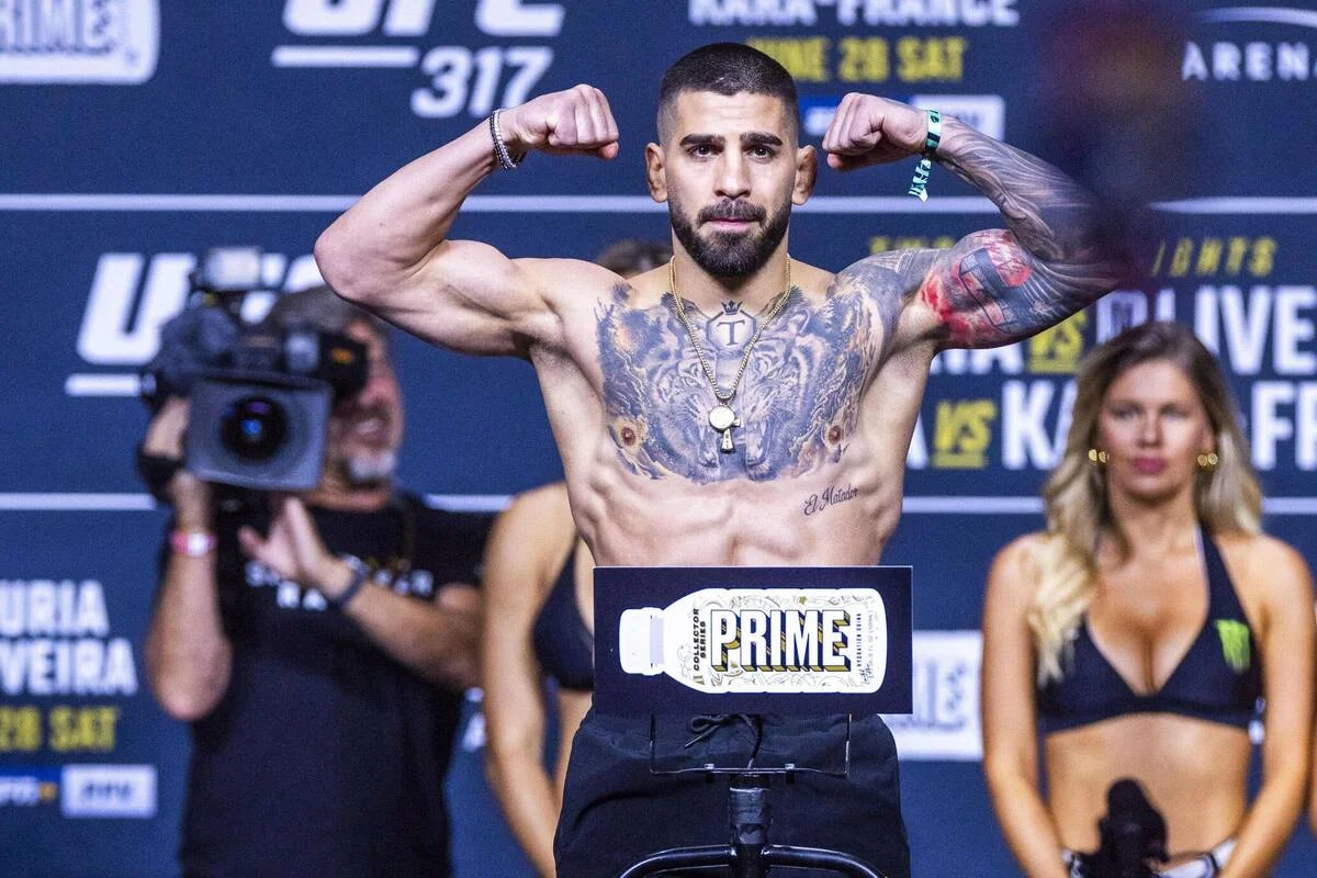 Topuria controlled most of the fight, landing sharp early strikes that caused Oliveira to bleed. Despite Oliveira’s attempts to utilize his renowned grappling skills, Topuria maintained strong defensive tactics and prevented any significant advances. The action frequently moved at a fast pace, with moments where Oliveira tried to trap Topuria against the cage.
