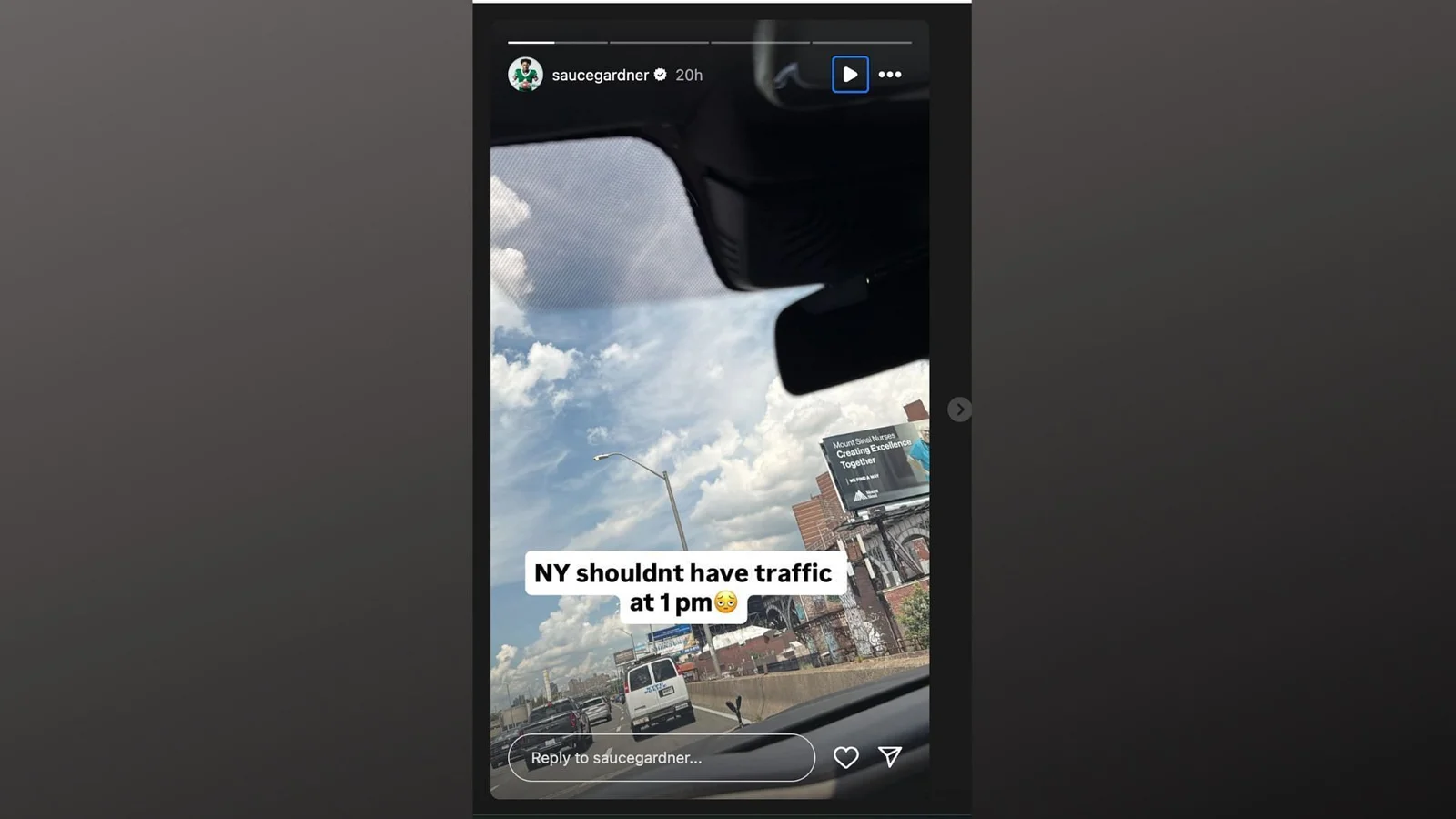 Gardner said in his Instagram story, expressing his frustration with the unusual midday gridlock in the city.