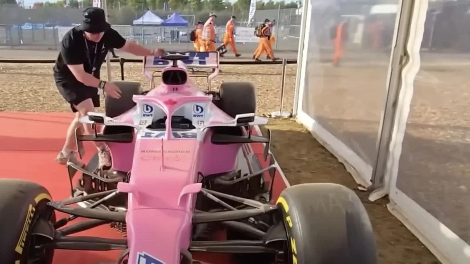 Northamptonshire Police confirmed the suspects were detained on suspicion of causing criminal damage after one of them was seen climbing into the Racing Point RP19 car displayed on site. The men, aged 23, 25, and 27, were taken into custody as inquiries unfolded.