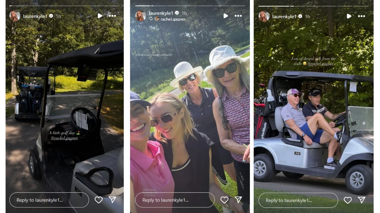 On Friday, Lauren posted a series of Instagram stories revealing moments from their golf day. One image showed golf carts lined up along a quiet, tree-lined path, setting the tone for a day of friendly competition. The photos, complete with golf bags and equipment, communicated a sense of excitement and anticipation for the round ahead.