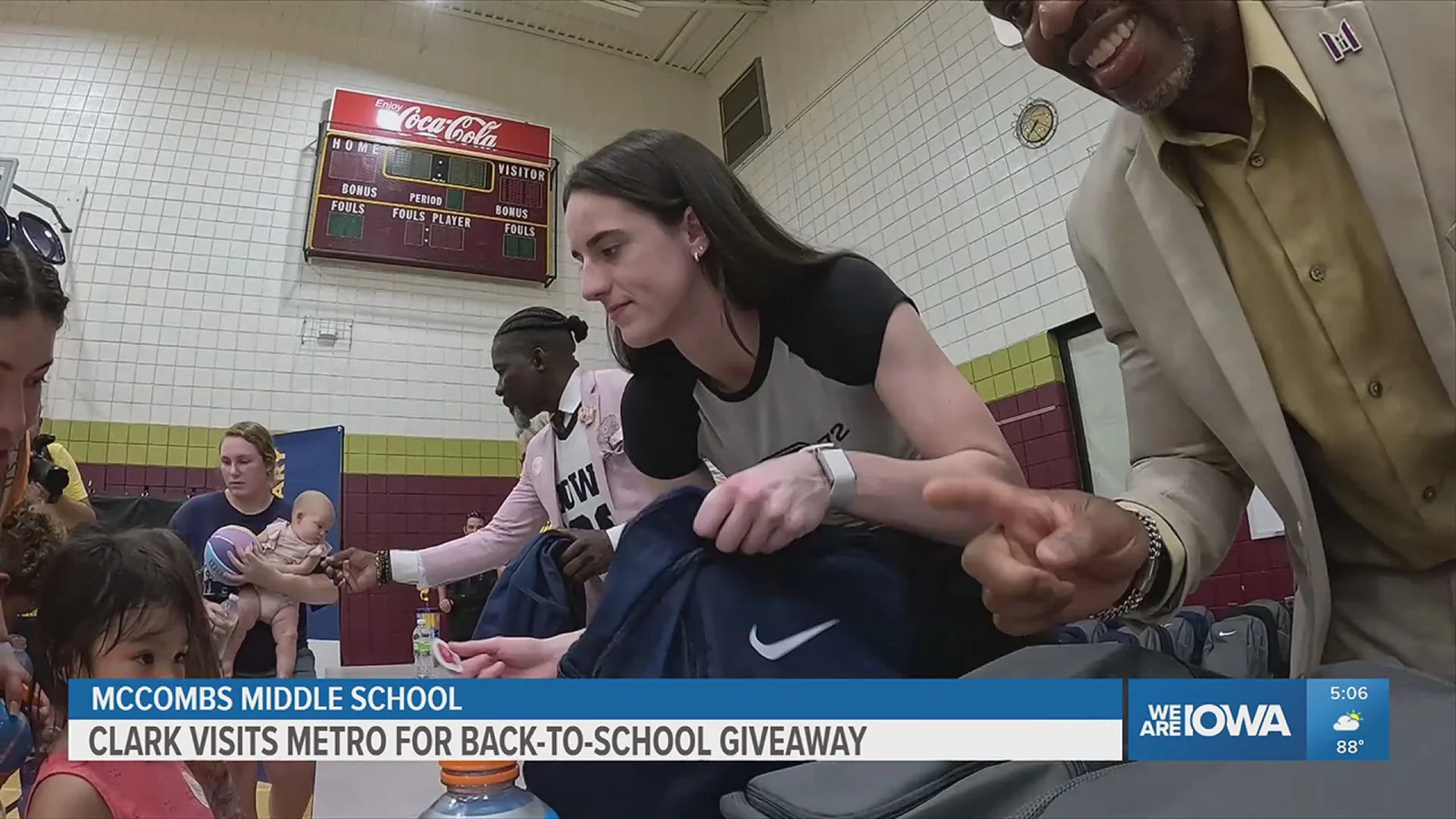 While in Des Moines, Clark attended the ribbon-cutting ceremony at McCombs Middle School for a newly built multi-use basketball and hardtop soccer court. This court is the first of four planned community courts to be opened by the Caitlin Clark Foundation within the Des Moines Public Schools district.