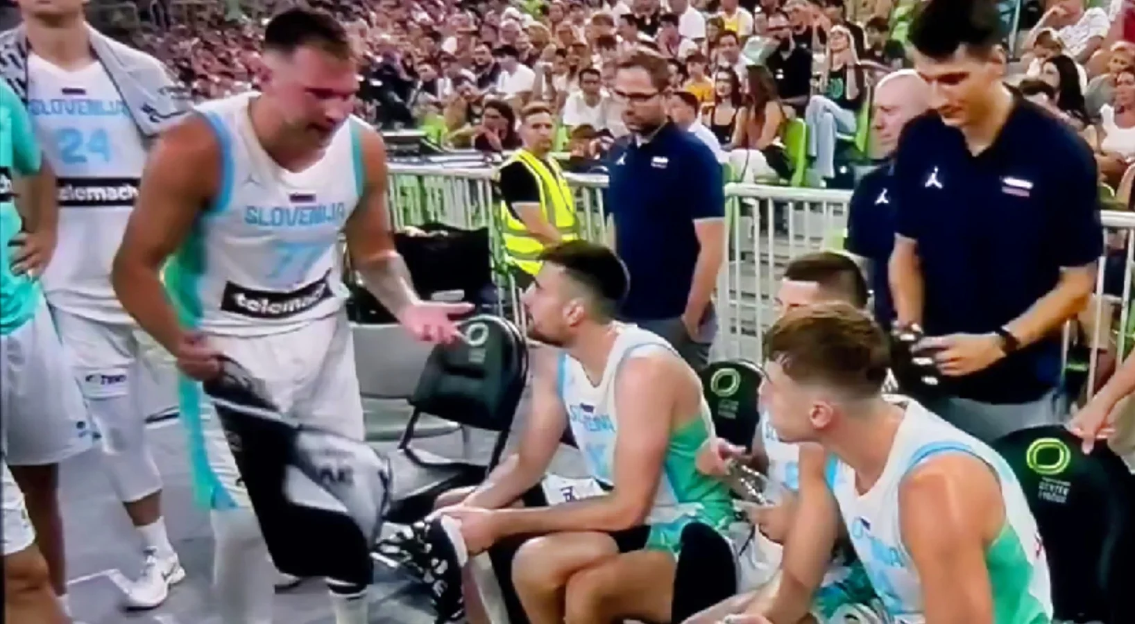 During the game, Doncic made a forceful drive to the basket, drawing a foul yet still completing the and-one play despite contact from a German defender. The crowd roared in approval, and his teammates joined the celebration, leading to a moment quickly picked up online. Slovenia’s number 24, clearly fired up by Doncic’s play, gave him a light slap on the back of the head along with a playful shove. It was a simple act of enthusiasm with no harm intended, showing just how emotionally charged the moment was.