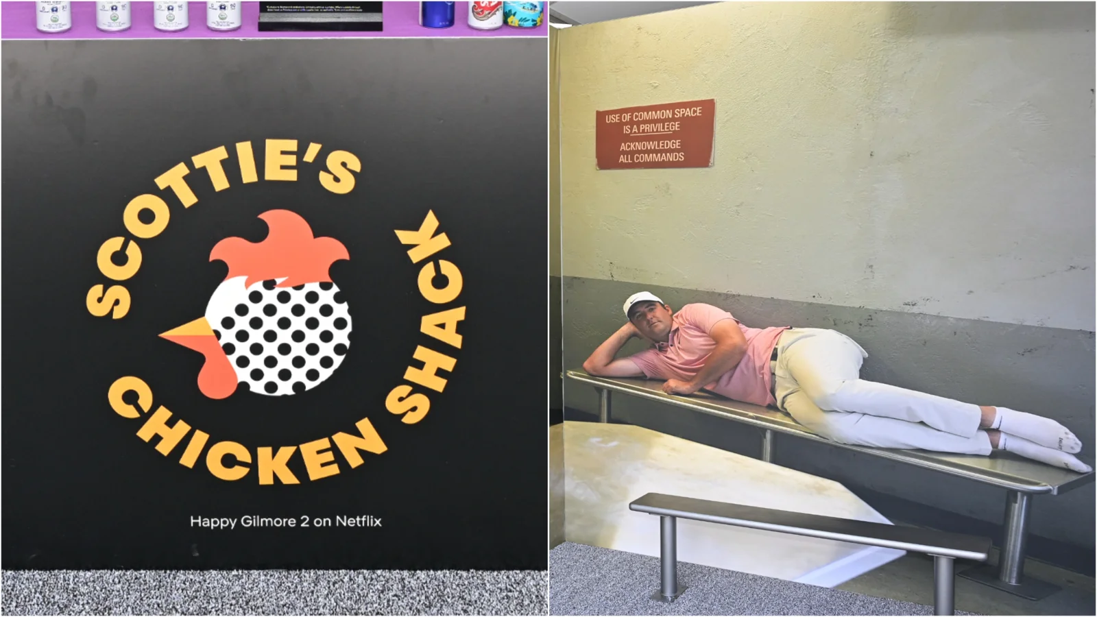 Adding to the humor, the food tent display included a photo of Scheffler from the movie lying on a bed inside a jail cell. This visual reference echoed a real-life incident where Scheffler was detained following the PGA Championship at Valhalla due to a traffic violation, blending fiction and reality in a lighthearted way.
