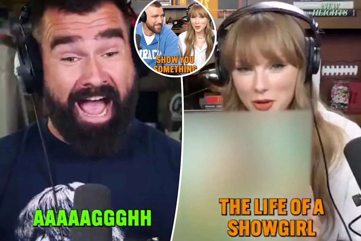 Taylor Swift surprised fans on Tuesday with a teaser for her latest project on the New Heights podcast, hosted by her boyfriend, NFL player Travis Kelce, and his brother Jason Kelce. During the brief clip, she unveiled the title of her upcoming 12th studio album, The Life of a Showgirl, while donning an elegant outfit that combined luxury jewelry with familiar fan merchandise.