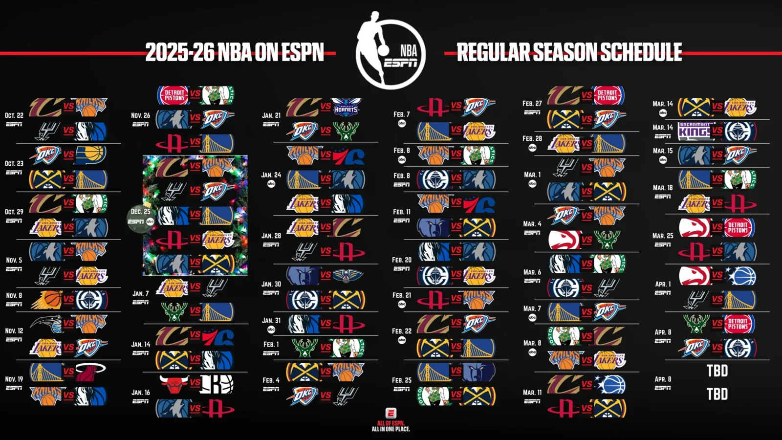 The Thunder, fresh from securing their first championship, are back in the spotlight with Shai Gilgeous–Alexander‘s standout performances drawing significant interest. The expanded national media coverage will air games on networks and platforms including ESPN, ABC, NBC, Peacock, and Amazon Prime, broadening access for fans to follow these high-profile matchups.