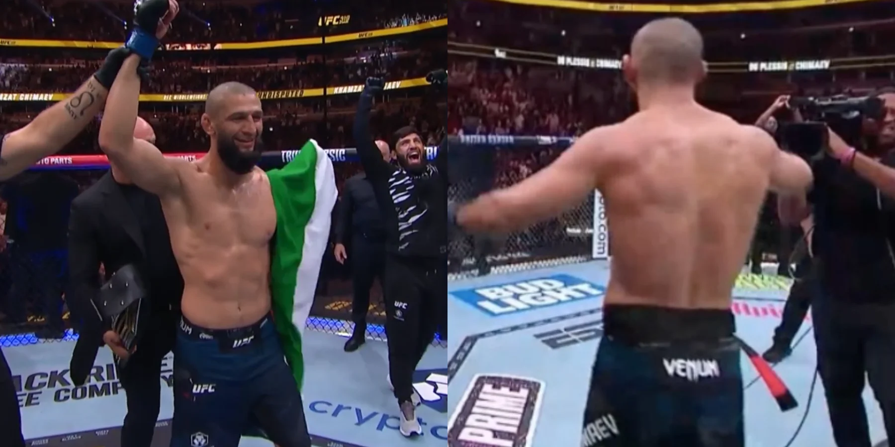 “So what makes sense for Khamzat Chimaev? Does it make sense for him to fight at 185lbs again or is he just too dominant? Does he go up to 205lbs? (Magomed) Ankalaev is fighting Alex Pereira, even still it’s like, maybe Ankalaev (does well against) Khamzat, it could be interesting, maybe, purely on how big Ankalaev is.”